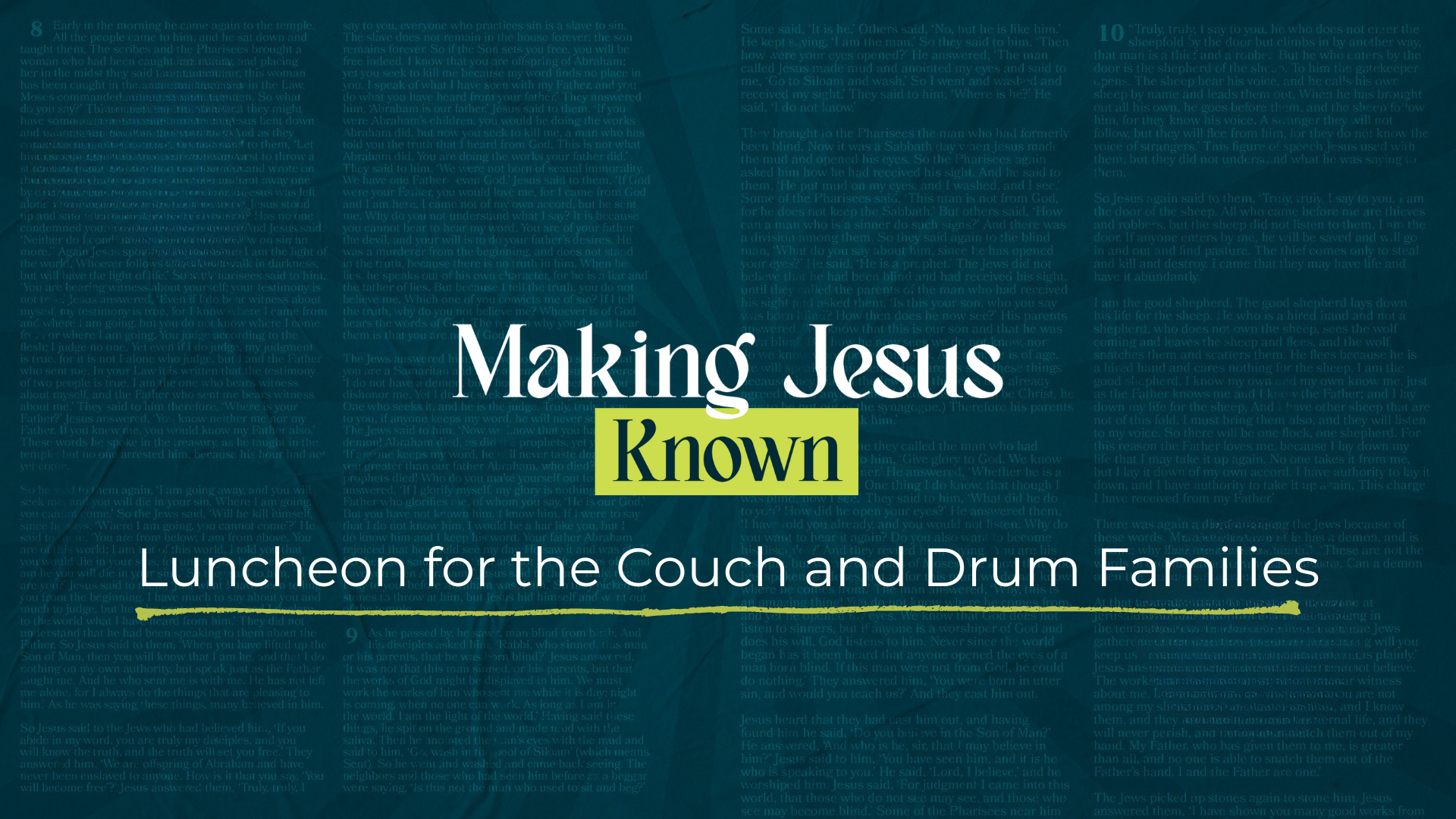 We’re thrilled to welcome Thomas and Karen Couch (serving in Eastern Europe) and Billy and Laurie Drum (serving in Spain) back to College Station for a short visit! Join us for a special luncheon as we celebrate their ministry, hear their stories, and encourage them in the work God is doing through their lives.